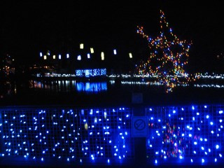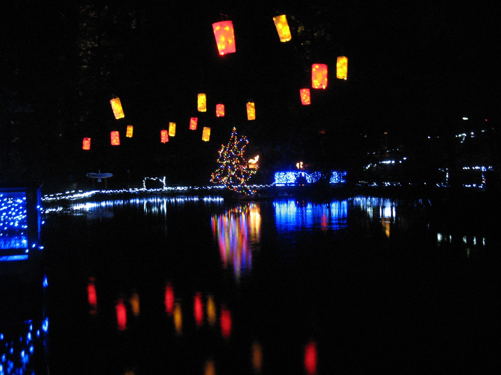 Fish pond – the lanterns changed colour.