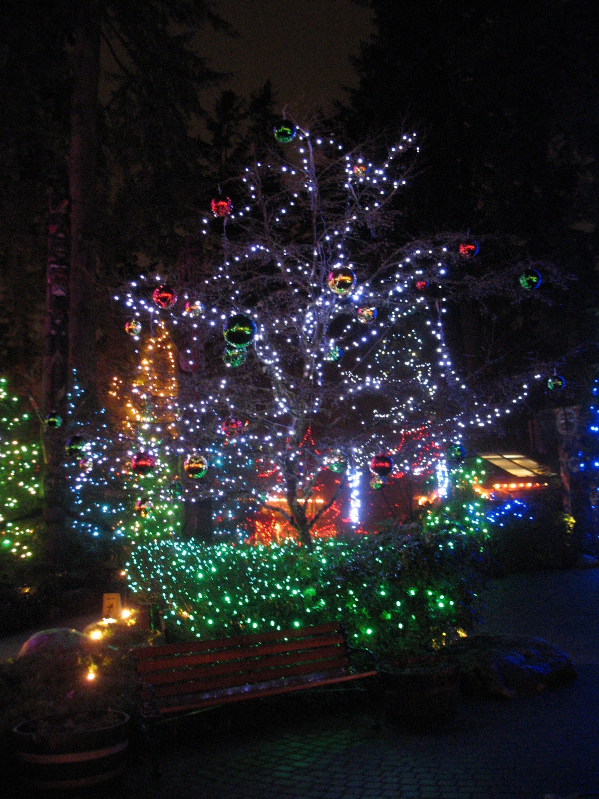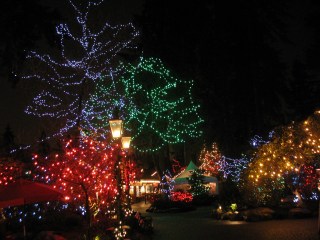 Last night Colin and I had the opportunity to go to the Capilano Suspension Bridge for their Christmas themed Canyon Lights.  My parents had won free passes and volunteered their babysitting services so we were able to go once Colin was off work.  It was only drizzling a little and wasn’t too cold.  It was a really nice date night!
