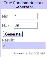 Sorry for the announcement late in the day – I just got home from work and remembered that I had intended to select the winner this morning. After inputing all the entries into a spreadsheet (necessitated by the two ballots for being a follower) I punched the grand total of entries into random.org. Here’s the winning number: