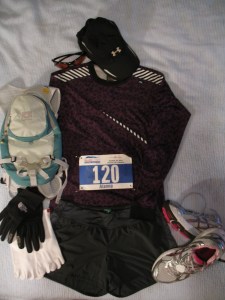 Colin and I got up at the ridiculous time of 5am on Sunday morning. Spud was at my parents’ house for a sleepover. Even so I think we only got about 6-1/2 hours of sleep. We had set out our things the night before because we knew we had to be out the door by ten to 6 at the latest. I ate my old race day standard (plain oatmeal) and made sure things were moving in the right direction, if you catch my drift…
