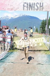 I may look like I’m having the race of my life here, but I was so miserable! My hip flexors, quads and hamstrings were extremely unimpressed with me; my digestive tract was unimpressed with me (see Mum? I can be discreet) to the point of severe chafing; and about 1/2 a kilometre later my knee started to pop/give out on the uphills. I figured if I forced myself to smile for the cameras I couldn’t break down and cry (I saved that until I found Colin and then bawled like a baby).