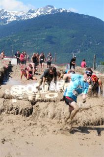 It’s amazing what a little investigating will get you. I was bored looking at Warrior Dash results so I found the youngest female finisher in the results (14) and looked up her pictures. What did I find, but my husband falling out of the mud pit!