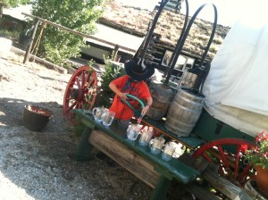 Rustico Farm & Cellars was pretty fun. After being greeted by 2 cowboys (who apparently wrangle grapes, not livestock) it was another hill. I forced myself to run up this one just to get a hill repeat out of it (I’m training for Ragnar…). The guy in the “Running Sucks” t-shirt gave me a good laugh. At the top I got a sheriff badge button that would give me a discount later in the day – good marketing, that! Had the requisite white, red, and water. Also had the added bonus of cocktail weenies. It’s amazing what you’ll eat on the run when finishing is the ultimate goal.