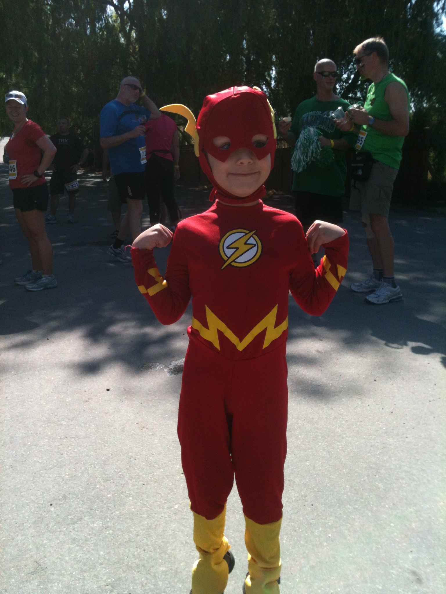 At the end of May we packed up our bags and headed to my in-laws. Conveniently it was my mother-in-law’s birthday the day before the race so we got to give her the “gift” of spending time with Spud the day after… We had anticipated making a sneaky escape from the house race morning, but Spud had other plans. He refused to go to sleep the night before unless we promised to wake him up before we left. Of course, he was sound asleep come morning, but we knew he’d be upset if we didn’t keep our word so we got him up, settled him on the couch with cartoons (because the grandparents weren’t up yet – it was 6:20am), and said goodbye.
