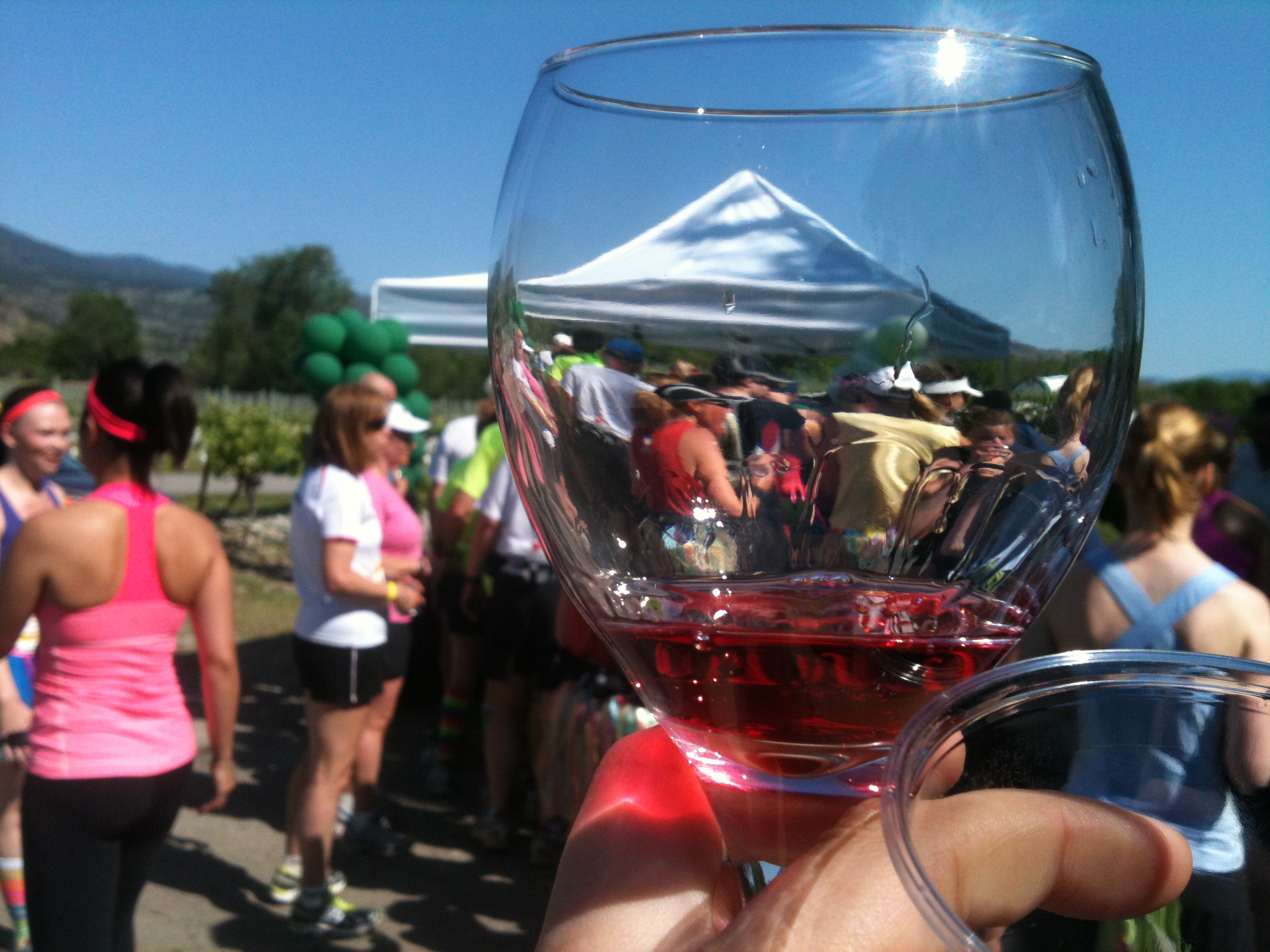 - Wine tasting wasn’t a requirement, but it was obviously encouraged. 98% of the runners went in. The 2% who took the road past instead got booed.