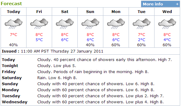1. It’s raining. Not a big deal here in Vancouver, but I haven’t had to run in the rain in AGES. Not too sure if I’ll pull out the water-resistant jacket tonight since it’s only drizzle. I might have to use my toque though since my ears started to hurt from the cold on my run last night.