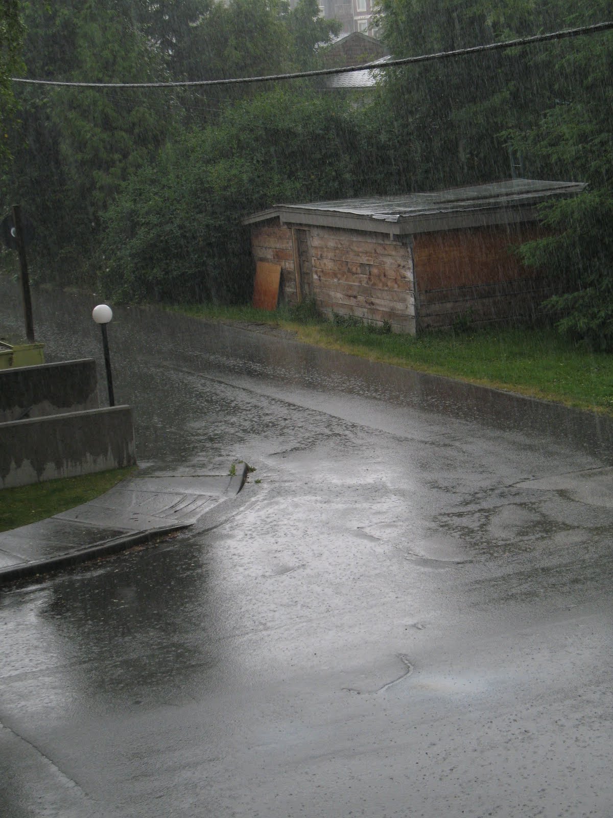 So, while I don’t have to deal with feet of snow (try a skiff) and extremely cold temperatures (maybe 0 C), I do have to deal with RAIN! And there was plenty of it today. I had scheduled a run with my friend Lindsay and she came over at noon. She didn’t have her little guy with her, but I had Spud so he was bundled up ready to go. When I looked out the window it was only drizzling. By the time we got outside to meet up it was pouring. On went the rain cover and then we were off. I had thought that we were maybe in a pocket of rain, but no. It poured the whole time. I’m not sure when Spud fell asleep, but he was out for about half the run. At about 4km I stopped caring about the wheel spray and puddles and just let my shoes get wet. They’re now stuffed with newspaper in the hopes that they’ll be dry tomorrow… In total we ran 11.38km in 1:28. Not fast by any means, but I was pushing 60+lbs and we walked up a decent hill close to the end. Despite the weather it was actually a really good run. We haven’t been running together for very long so we’re still in a getting-to-know-you stage and we had lots to talk about. It was great to have the commitment as I don’t really think that I’d get out the door (especially with a 3 year old) if I didn’t have someone depending on me!