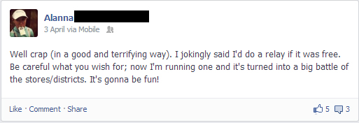 To help support our team please follow this link (http://ow.ly/lwNJ7) – you can donate under my name or to the team as a whole.