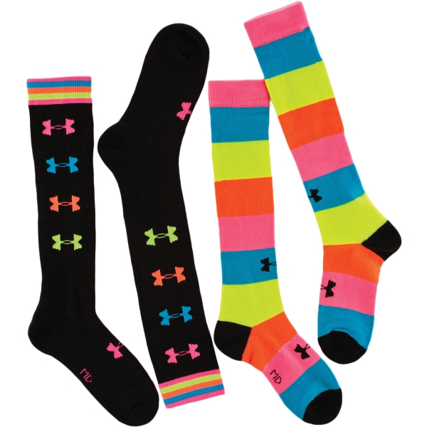 Under Armour Recur Over The Calf Sock: When I saw these at work I really wanted them! They’re just this side of obnoxious. The picture doesn’t really do them justice – they are fluorescent. I’m not sure if I’ll wear them running (I’d need a new skirt since mine will clash terribly), but they seem like they’d stay up if I were to try.