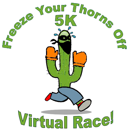 Now, back to my first experience being a race bandit.* Adam, over at I am Boring/The Boring Runner, hosted the Freeze Your Thorns Off 5K Virtual Race this weekend. The goal was to run 5 kilometres. That was pretty much it. If I had been living in Arizona I could have gone for a run with a group of people, but I don’t, so I didn’t… I meant to sign up (really I did), but I usually work on Saturdays and figured that it wouldn’t work out. I found out that I was scheduled to work on Sunday instead yet I still didn’t sign up. My excuse is that I was too lazy to let Adam know it must have sold out.